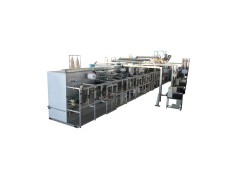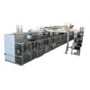 1. Machine Characteristics 1). Full servo motors driving, conveying accuracy is high. 32 sets of moving control servomotor (Bosch Rexroth, which made in Germany) or Mitsubishi made in Japan (option), 14 sets Mitsubishi transducers use for unwinding conversion system with tension control. 2). Constant tension controlling, roller center unwinding by driving 3). SAP put in fixed amount 4) High speed automatic changing rollers by connecting raw materials. 5). Air operated axis makes feeding easy. 6). Auto-inspection and rejection on line function. 7). Automatic web-guider 8). Touchable screen controlling platform, to provide the service between man and machine by pictures file. 9). Many specifications of fluff pulp, drum formation. 10). Leg cuff and elastic waistband structures 11). Security door adopts the alnico framework with the steeled glass door. Option Devices: 1). Dust collect and low noise pipe system 2). Full servo horizontal type code machine/automatic feeding packing bags structure 3)Attached use hot melt applicators of Nordson or ITW, which made in USA. 2. Main technical parameters. 1). Designed speed 200/min 2). Running speed: 450PCS/min(S size) 3). Qualified rate: 97 %( based on 7.5 hours, rate of qualified amount and total amount, excluding caused by glue applicators failure) 4). Efficiency: ≥ 85%( based on 7.5 hours, practical productivity and theory productivity) 5) Capacity: 360kw (including glue machine, double drums formation); 300KW (including glue machine, single drum formation) 6). Electricity: 3 phases 4 lines 380V+-5%, 50Hz (earth line) 7). The lowest air pressure: 6 kg/cm2 8). Total weight: About 60000 kg 9). Noise: < 85dB (A) 10). Main machine overall dimensions: 20x2x2.8M (LxWxH) 11). Machine taking total space: 28x8x3.5M (LxWxH) (including outer attached equipment)