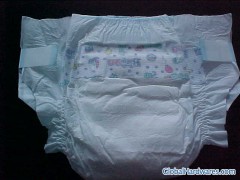 Main ingredients: Non woven, fluff pulp, SAP and PE film. -Soft & dry non woven top sheet never stimulates baby's skin while makes fluid penetrate quickly and always keeps the top sheet dry. -SAP inside can absorb fluid quickly and prevent any return penetration. We use the top quality SAP from Sumit, Japan. -Leakage cuff guard design uses a soft leg edge to prevent side leakage and protects baby's skin more effectively. -Waistband: One side Elastic waistband. -Magic tap. It will avoid the disadvantage of normal adhesive tap and fit baby well.