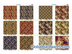 80% wool/20% acrylic blend yarn, high density, cut pile with carved design/patterns, used in hotel room