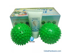 One kind of environmental protection and health care laundry balls, taking high alkyl sulfate and non-ionic surfactant etc as ingredients, is used for bacterium resistance and stain removal, esp. for washing children's and pure cotton top-grade clothing.