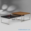 ■ Black, in high-gloss UV finish; walnut, in UV finish; chromed metal leg