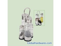 salt and pepper set of 5 pcs,pepper can/salt can/oil can/vinegar can material:stainless steel and glass size: 11 x 10 x H22.5cm