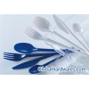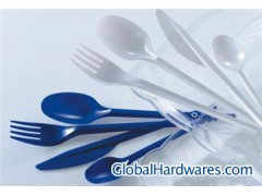 00494 51pcs plastic cutlery set. Including 17pcs of each of spoon/fork/knife in printed polybag. 48set/ctn. 02056 PS White 1 Knife 2.3gm + 1 Fork 2.4gm + 1 single layer Napkin (33 x 33cm,1.6gm) / set in polybag, 500sets/ctn 02270 color:white,100pcs/set with sticker,30sets/PDQ box