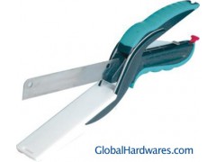 1.strong and durable stainless steel blades,with spring-action handle,safety lock and comfort grip 2.it is a knife and cutting boad in one