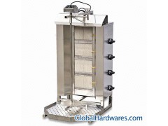 STAINLESS STEEL KEBAB GRILL WITH FOUR BURNER Voltage: 120 to 220V Frequency: 60Hz Current: 1 .5A With stainless steel cabinet Charging space(W*H):510X600MM Appliance height without motor 1030MM Operating height with motor 1080MM Heating efficiency(Hi) 14KW Combustible surface(HXW)520X185MM Max. weight of meat abt.65kg Max. height of meat 600MM 54PCS/20'FT 108PCS/40FT Remove the unit for regular cone-shaped and vertical broiling Gas type: natural or LP Burner: 10,000BTU/hour Used to cook mouth-watering and juicy kebabs Easy to clean