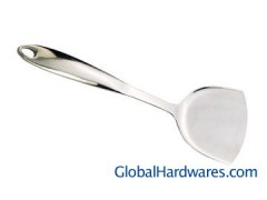 stainless steel hollow handle chinese turner, L*W*H:340X100X30MM, NET WEIGHT:142G SUS304 18-8 stainless steel material, thickness:2.5MM, hollow handle, using seamless welding technology, no traces of the surface, with brightness well with polished.