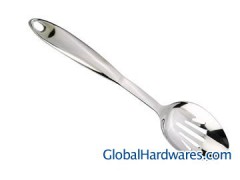stainless steel hollow handle slotted spoon, L*W*H:345x70x35MM, NET WEIGHT:138.5G SUS304 18-8 stainless steel material, thickness:2.5MM, hollow handle, using seamless welding technology, no traces of the surface, with brightness well with polished.