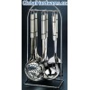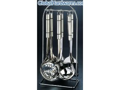 7 PCS STAINLESS STEEL KITCHENWARE:TURNER,FORK,SPOON,SKIMMER,SOUP LADLE,SPAGHETTI AND 623 STAND。 SUS304 18-8 stainless steel material, thickness:2.5MM, MATERIAL OF HANDLE IS STAINLESS STEEL, ELECTRIC WELDING PROCESS TO CONNECT HEAD STAINLESS STEEL PART AND HANDLE PACKING:pc/polybag, 6PCS with stand in color box, 12 sets in export carton. MEAST.59*46*42.5CM 1X20’FT:3000 SETS