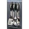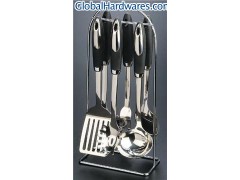 7PCS TPR HANDLE STAINLESS STEEL KITCHENWARE SET TURNER,FORK,SPOON,SKIMMER,SOUP LADLE,SPAGHETTI AND 623 STAND。 SUS304 18-8 stainless steel material, thickness:2.5MM, MATERIAL OF HANDLE IS TPR, ELECTRIC WELDING PROCESS TO CONNECT HEAD STAINLESS STEEL PART AND HANDLE PACKING:pc/polybag, 6PCS with stand in color box, 12 sets in export carton. MEAST.59*46*42.5CM 1X20’FT:3000 SETS