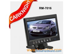 Screen size: 7 inches Display mode : 16:9/4:3 Format : PAL or NTSCPixels : 480(W) xRGBx234(H)Power supply: DC 12V Power Consumption: 8.5W Operation temperature : -10℃ ~ +50℃ Storage temperature : -20℃ ~ +60℃Adjustable image brightness/color/contrast2 video/1 audio inputAV input and audio output in panelAdjustable bracket installationSwitch display mode by remote controlCar backing backsight function, automatic image switch to right or leftVideo signal disappear, display blue screenCard style remote control