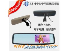 Features: 1. digital high-definition TFT-LCD display, play DVD / VCD or Rear view camera images clearer, more vivid, colorful glory; 2. Built-in Bluetooth: With Bluetooth hands-free, caller number display, manual answering mode, to ensure traffic call things correct; 3. Special optical lens can replace the original car rearview mirror, Rear view camera when the sun strong anti-vertigo, so that a clearer rear view, reversing a more secure; 4. Reversing automatic wake-up Rear view camera system functions, traffic automatically resume audio and video entertainment player, so that traffic safety merger of entertainment and parking, to driving fun and safety integration; 5. Light touch approach control, touch-sensitive technology, quick operation, nice appearance; 6. Can be connected to VCD / DVD / GPS / TV and other video output signal compatibility; 7. Limousine special metallic stent, pure installing electronic products, consistent with the original car; 8. Complete car sound special support, covering all the mainstream models. Specifications: 1. Show foot size: 4.3 inches. Best for the safe use of Rear view; 2. Displays: TFT-LCD. digital high-definition screen, make the image clearer, more vivid colors; 3. Resolution: 480 (H) × RGB × 272 (V). HD resolution; 4. Display format: 16:9 or 4:3. Entertainment and dual rear view display format; 5. Power: ≤ 2W. Ultra-low power consumption, to ensure products have no fever. 6. Rated Voltage: DC 12V. The original vehicle standard voltage; 7. Video Input: AV1/AV2. Èr video input, AV1 then VCD / DVD video output signal (system default), AV2 connection reversing camera (reversing automatically switch to); 8. Signal format: PAL / NRSC / AUTO. Compatible with all signal formats; 9. Brightness: 250 CD / ㎡. HD brightness; 10. Contrast: 300:1. A clear contrast. 11.Color:Black, Beige(optional)Reverse use features: 1. Power situation: driving process automatically when reversing from the video AV1 (VCD / DVD) playback screen switches to AV2 (Rear View Camera) screen will automatically return after reversing cut to video AV1 (VCD / DVD) Play screen, so traffic and parking safety compatible recreation; 2. Shutdown situations: automatic start reversing parking detected AV2 (Rear view camera) after the signal and displays the AV2 as the screen, automatic shutdown after backup to make our products more energy. * Optional camera: visual reversing function to achieve * Use 4.3-inch high brightness LCD screen, the whole size of the original car rearview mirror rather, special type of professional installation needs to meet to maintain original style, now with the installation of 30 vehicle models accessories: Dedicated rear-view mirror mounting brackets correspond to the table - 01: Toyota Camry, overbearing, PREVIA, Crown, Reiz, Corolla, the new Vios, Buick Regal, GL8, Lu Zunfu Temengdiou, Fox FAW M6 New Odyssey - 02: Guangzhou Honda Accord, wide of the Fit, 05 Odyssey, East the Civic, Mitsubishi Galant, Chery A5, 08 new models Sidi Luxury Fit - 03: Volkswagen Passat, Bora, lead Yu, speed Teng, Audi, Jetta, Santana, polo, Skoda, China Jun Jie, Grandeur - 04: General Excelle, Spark, musical styles - 05: Nissan Landmark Plaza, Tiida, Teana, east of the CRV, Changan Mazda 2, day two hand language - 06: Chevrolet Epica, Chery Eastar, Chery A1, Chery Q6 - 07: Hyundai Sonata, Accent, Tucson Yilanteya Buick LaCrosse - 08: wide of the Sidi - 10: Southeast Soveran, Lancer