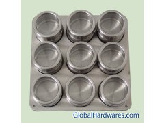canister 9 pcs set,magnetic to the board. material:stainless steel size:22.5 x 22.5 x 5.5cm