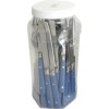,18/0 stainless steel,thickness 1.2mm,.includes:1 PVC bottle,07 forks,07 knives,07 soup spoons,07 desert spoons.
