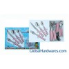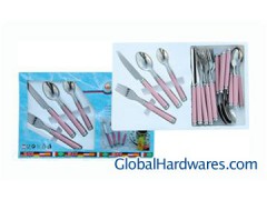 24pcs tableware set,18/0 stainless steel thickness 1.2mm,includes:1 plastic tray,1 color box with window,06 forks,06 knives, 06 soup spoons,06 desert spoons.