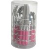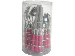 24pcs tableware set,18/0 stainless steel thickness 1.2mm,includes:1 Tray,1 PVC box,06 forks,06 knives, 06 soup spoons,06 desert spoons.