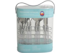 16pcs tableware set,18/0 stainless steel thickness 1.2mm,includes:1 Tray,1 PVC box,04 forks,04 knives, 04 soup spoons,04 desert spoons.