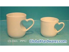 The Mug with "Heart" handle is suitable to home, hotel, restaurant. White Porcelain Mug,with fashionable design, top quality and competitive price. Different style,size,color according to clients' requirtment.