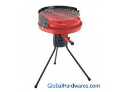 -Hygienic chrome-plated grill with retractable handle -Revolving charcoal tray helps distribute heat evenly -Ashtray retains charcoal ashes to keep your environment clean -Clip-on windbreak with slots for high and low grill settings -Four step adjustable lever helps control ventilation and flame -Tripod with barrel design for sturdiness and safety
