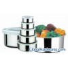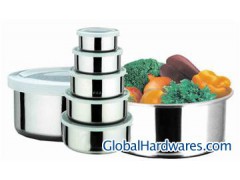 Stainless Steel Mixing Bowl Set/ Food Container 1) 410 material 2) Diameter: 10cm, 12cm, 14cm, 16cm, 18cm 3) Height: 4.4cm, 5cm, 5.7cm, 6.3cm, 7cm 4) Body Thickness: 0.3mm 5) Packed in color box, 48 sets per carton