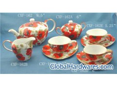 The Tea Set(9.5"Tea Pot&6"Sugar Pot&5.5"Milk Pot&5.25"Tea Cup&6.5"Saucer) is suitable to home, hotel, restaurant. Decal Porcelain Tea Set,with fashionable design, top quality and competitive price. Different style,size,color according to clients' requirtment.