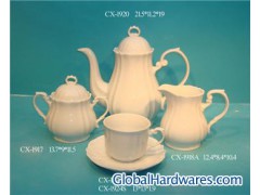 The Coffee/Tea(5.4"Sugar Pot,7"/5"Milk Pot, 9"/8.5"Tea Pot,3"/3.3"Tea Cup,5"/6"Saucer) Set is suitable to home, hotel, restaurant. White Porcelain Coffee/Tea Set,with fashionable design, top quality and competitive price. Different style,size,color according to clients' requirtment.