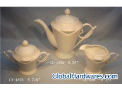 The Coffee/Tea Set(5 1/3"Milk Pot,9.25"Tea Pot,5 7/8"Sugar Pot) is suitable to home, hotel, restaurant. White Porcelain Coffee/Tea Set,with fashionable design, top quality and competitive price. Different style,size,color according to clients' requirtment.