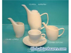 The Coffee/Tea Set(4.5"Milk Pot without handle, 7.25"Tea Pot, 5.25"Milk Pot with handle,2.75"Tea Cup,4.6"Saucer) is suitable to home, hotel, restaurant. White Porcelain Coffee/Tea Set,with fashionable design, top quality and competitive price. Different style,size,color according to clients' requirtment.