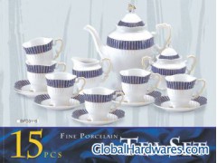 PORCELAIN WARE, HAVE UNIQUE & VARIOUS PATTERNS WITH FRESH, ATTRACTIVE COLORS & SHAPES WITHOUT LEAD AND POISON 15PCS TEA SET:TEA CUP&SAUCER:6+6PCS;TEA POT:1PC;SUGAR POT:1PC;CREAMER:1PC