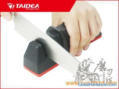 Product nameProfessional Two-stage Pratical Kitchen Knife Sharpener Product Features1.Two stage - coarse and fine - sharpening design.2.Unique sharpening wheel design, convenient to sharpen back and forth. Using Instruction1,Place the knife sharpener on a stable surface when using.2,Complete one or both of the following steps depending on how blunt the blade is.Step 1:Coarse sharpening, suit to dull knives. Place knife on the sharpening slot, using slight downward pressure, run the blade from its heel to its point through the slot. Repeat three to five times. Sharpen the tools every six months or as required.Step 2:Fine honing: it's a necessary step which used to eliminate the burrs on the knife and polish it. Please refer to the step 1 regarding to the use method. It is recommended to do it approximately once a week to keep your blade sharp at any time.3,Clean the knife with the water or wiper and dry it after use; clean the knife sharpener with non-abrasive brush. Caution:1,Do not use the knife sharpener to sharpen serrated blades or scissors.2,To avoid damaging the knife, please sharpen the knife slightly.3,Do not put the sharpener in the dishwasher or submerge in Water.4,Please put the knife sharpener and knife beyond the reach of children to avoid any accidents.