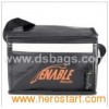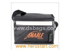 Shoulder cooler bag 1. Material: 70D/PVC+2mm foam foil 2. Size: 21*14*13cm 3. Logo: Can be customized 4. Style: Shoulder 5. Usage: Keep cans or others 6. Technical details-features A. with shoulder B. A main zipper compartment, C. with a label