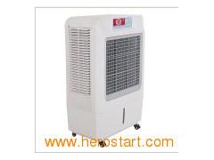 Portable eco-friendly air cooler Working Principle: Air-conditioner activates refrigeration, air-motor time-lapse starting up, pump and ozone discharge chamber work simultaneously, high-voltage corona is generated from ozone discharge chamber. Cooling water, after sucked by pump, flow pass jet device, and then negative pressure via air entry is generated to suck ozone in ozone producer into cooling water, and then dissolved as highly dense ozone water by mixer. Ozone water flows through all sides of evaporimeter and flows down as wet curtain. Then, motor starts work, and outdoor hot air is drawn by air-conditioner, passes through highly dense ozone wet curtain and then cooled and filtered, air temperature can be lowered around 3-7° C, and also the odour mixed with air and that from air-conditioner can be very effectively removed. So, the air drawn in feels obviously cool and fresh. Meanwhile, a small portion of gaseous ozone is drawn inside with the fresh and cool air after cooled down and filtered, which can disinfect bacterial virus mixed in air, and meanwhile very effectively eliminates the odour inside generated from new decoration, machinery equipment, and logistics etc. A portion of ozone after disinfected is automatically reduced as oxygen in about 30 minutes, while the other portion of ozone is also reduced as oxygen after drawn outdoors by fan for about also 30 minutes. The ozone water inside air-conditioner is circulated in water pond after cooled down by wet curtain. Ozone water can effectively prevent the growth of bacteria and green algae etc. And so water quality can be guaranteed clean. Ozone dissolved in water also automatically reduces oxygen after 30 minutes, so there is no second-time pollution and environmental protection can be truly actualized. Product Characteristic 1. 20-30 m² Directly supply air and change air for cooling, with power consumption 0.2 degree per hour; 2. Functions including electronic 3-speed remote control, over-voltage protection, phase-lack/water-lack protection, automatic/manual cleaning change water, automatically swinging etc. 3. Aluminum alloy 3 axial flow fans make air flow in three directions with low noise and large air volume; 4. Shell adopts the new PPT engineering plastic, resistant to high temperature and solar radiation, prevents ultraviolet ray, ageing and has long service life. 5. High efficiency evaporative wet curtain has strong water absorbability, good cooling effect, and is durable with edge-covered protection; 6. Applicable to single-phase power supply, and suitable to those places such as food stall, Internet bar, and factory etc.