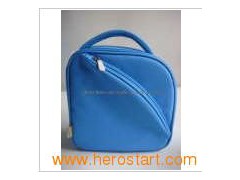 Lunch Cooler Bag with carrying handle Material: 600x300D polyester + aluminium insulation 1. Prod Info. &Terms Material 600x300D polyester + aluminium insulation Size 28.5*13.5*18.5(cm) Packing 1PC/polybag Sampling Time 1-2 weeks Shipment Time 35-45 days after confirmed order Payment Terms L/C at sight, or T/T 30% deposit against copy of B/L Accessories: 1 x fresh box 1 x water bottle 2. Advantages 1). Designing: 6 designers, designed for Intercoop and Woolworths etc. And have our own brand. 2). Experience: 8 years experience in picnic bags, cooler bags, picnic rugs, trolley bag production. 3). Testing: All materials can pass test of AZO Free, Low Cadmium, LFGB Food Safety & FDA. 4). Factory Audit Certificate: BSCI and ISO9001