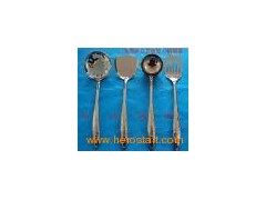 Cooking tools(Kitchenware-06) Cooking tools accessories include leak, flat shovel, macaroni holder, soup spoon, rice spoon and packing. 1. Product name: Cooking tools 2. Item No: Kitchenware-06 3. Material: 100% stainless steel & ABS handle 4. Packing: Carton with each PCS in a plastic film, pastern bag or can be customized 5. MOQ: 1000SETS 6. Sample leadtime: Within three days 7. Mass production leadtime for MOQ qty: About 20 days after you confirm our samples 8. Logo: Laser 9. Payment term is 30% deposit, balance should be paid before shipment or against B/L draft by TT, Western Union, Paypal or L/C 10. Port: GuangZhou or ShenZhen or Customized Cooking tools packing: We can pack it according to customer requirement or as the following form. High quality & best serve & Practical & Endurable ( Customized logo and design ) Cooking tools can be used at home or outdoors or give away as business gift or do promotional advertisement We are professional manufacturer of hardware products. We will do our best to support your business Looking forward to establishing the long-time cooperation with you! NO. Thickness: (mm) Size: l*w(mm) Material Polish QTY/Carton Carton Size(cm) Net Weight 1. Leak 3.0mm/175g 360*112mm 430 Buren light 240pcs 55*45*55 42kg 2. Flat shovel 3.0mm/165g 360*100mm 430 Buren light 240pcs 55*50*40 40kg 3. Macaroni holder 3.0mm/125g 360*60mm 430 Buren light 240pcs 55*50*50 30kg 4. Soup spoon 3.0mm/155g 360*90mm 430 Buren light 240pcs 55*50*50 37kg 5. Rice spoon 3.0mm/140g 360*80mm 430 Buren light 240pcs 55*50*40 24kg 6. Packing 3.0mm/105g 360*76mm 430 Buren light 240pcs 45*40*40 25kg