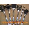 Kitchenware(Kitchenware-01) Kitchenware accessories include leak, flat shovel, macaroni holder, soup spoon, rice spoon and packing. 1. Product name: Kitchenware 2. Item No: Kitchenware-03 3. Material: 100% stainless steel & ABS handle 4. Packing: Carton with each PCS in a plastic film, pastern bag or can be customized 5. MOQ: 1000SETS 6. Sample leadtime: Within three days 7. Mass production leadtime for MOQ qty: About 20 days after you confirm our samples 8. Logo: Laser 9. Payment term is 30% deposit, balance should be paid before shipment or against B/L draft by TT, Western Union, Paypal or L/C 10. Port: GuangZhou or ShenZhen or Customized Kitchenware packing: We can pack it according to customer requirement or as the following form. High quality & best serve & Practical & Endurable ( Customized logo and design ) Kitchenware can be used at home or outdoors or give away as business gift or do promotional advertisement We are professional manufacturer of hardware products. We will do our best to support your business Looking forward to establishing the long-time cooperation with you! NO. Thickness: (mm) Size: l*w(mm) Material Polish QTY/Carton Carton Size(cm) Net Weight 1. Leak 3.0mm/175g 360*112mm 430 Buren light 240pcs 55*45*55 42kg 2. Flat shovel 3.0mm/165g 360*100mm 430 Buren light 240pcs 55*50*40 40kg 3. Macaroni holder 3.0mm/125g 360*60mm 430 Buren light 240pcs 55*50*50 30kg 4. Soup spoon 3.0mm/155g 360*90mm 430 Buren light 240pcs 55*50*50 37kg 5. Rice spoon 3.0mm/140g 360*80mm 430 Buren light 240pcs 55*50*40 24kg 6. Packing 3.0mm/105g 360*76mm 430 Buren light 240pcs 45*40*40 25kg