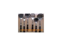 Cooking utensil(Kitchenware-02) Cooking utensil accessories include leak, flat shovel, macaroni holder, soup spoon, rice spoon and packing. 1. Product name: Cooking utensil 2. Item No: Kitchenware-02 3. Material: 100% stainless steel & ABS handle 4. Packing: Carton with each PCS in a plastic film, pastern bag or can be customized 5. MOQ: 1000SETS 6. Sample leadtime: Within three days 7. Mass production leadtime for MOQ qty: About 20 days after you confirm our samples 8. Logo: Laser 9. Payment term is 30% deposit, balance should be paid before shipment or against B/L draft by TT, Western Union, Paypal or L/C 10. Port: GuangZhou or ShenZhen or Customized Cooking utensil packing: We can pack it according to customer requirement or as the following form. High quality & best serve & Practical & Endurable ( Customized logo and design ) Cooking utensil can be used at home or outdoors or give away as business gift or do promotional advertisement We are professional manufacturer of hardware products. We will do our best to support your business Looking forward to establishing the long-time cooperation with you! NO. Thickness: (mm) Size: l*w(mm) Material Polish QTY/Carton Carton Size(cm) Net Weight 1. Leak 3.0mm/175g 360*112mm 430 Buren light 240pcs 55*45*55 42kg 2. Flat shovel 3.0mm/165g 360*100mm 430 Buren light 240pcs 55*50*40 40kg 3. Macaroni holder 3.0mm/125g 360*60mm 430 Buren light 240pcs 55*50*50 30kg 4. Soup spoon 3.0mm/155g 360*90mm 430 Buren light 240pcs 55*50*50 37kg 5. Rice spoon 3.0mm/140g 360*80mm 430 Buren light 240pcs 55*50*40 24kg 6. Packing 3.0mm/105g 360*76mm 430 Buren light 240pcs 45*40*40 25kg