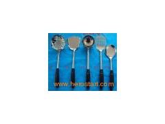 Kitchen tools(Kitchenware-04) Kitchen tools accessories include leak, flat shovel, macaroni holder, soup spoon, rice spoon and packing. 1. Product name: Kitchen tools 2. Item No: Kitchenware-04 3. Material: 100% stainless steel & ABS handle 4. Packing: Carton with each PCS in a plastic film, pastern bag or can be customized 5. MOQ: 1000SETS 6. Sample leadtime: Within three days 7. Mass production leadtime for MOQ qty: About 20 days after you confirm our samples 8. Logo: Laser 9. Payment term is 30% deposit, balance should be paid before shipment or against B/L draft by TT, Western Union, Paypal or L/C 10. Port: GuangZhou or ShenZhen or Customized Kitchen tools packing: We can pack it according to customer requirement or as the following form. High quality & best serve & Practical & Endurable ( Customized logo and design ) Kitchen tools can be used at home or outdoors or give away as business gift or do promotional advertisement We are professional manufacturer of hardware products. We will do our best to support your business Looking forward to establishing the long-time cooperation with you! NO. Thickness: (mm) Size: l*w(mm) Material Polish QTY/Carton Carton Size(cm) Net Weight 1. Leak 3.0mm/175g 360*112mm 430 Buren light 240pcs 55*45*55 42kg 2. Flat shovel 3.0mm/165g 360*100mm 430 Buren light 240pcs 55*50*40 40kg 3. Macaroni holder 3.0mm/125g 360*60mm 430 Buren light 240pcs 55*50*50 30kg 4. Soup spoon 3.0mm/155g 360*90mm 430 Buren light 240pcs 55*50*50 37kg 5. Rice spoon 3.0mm/140g 360*80mm 430 Buren light 240pcs 55*50*40 24kg 6. Packing 3.0mm/105g 360*76mm 430 Buren light 240pcs 45*40*40 25kg