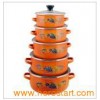 Name: Casserole with glass cover Item No: LF-009 CTN: 6SETS Size: 16/18/20/22/24CM Meas: 73.6*25.3*55CM
