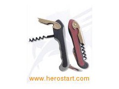 Soft touch bicolour plastic handle wine corkscrews. Material: ABS and rubber rim handle + lever stainless steel(also available in nickel plated-cheaper), stainless steel blade. Teflon coated spiral. With big size for Screen / Pad Print & hot foil stamp. Available in customed colour.