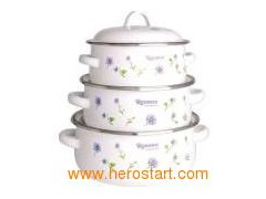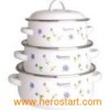 Enamel casserole Item No.: LFC 1005-1 Size: 16/18/20CM QTY/CTN: 8SETS MEAS: 41x27x42CM G. W/N. W: 14.6/12KG 1. Different colour and flowers design for your choice, OEM also welcomed. 2. Various of models can be mixed in one HQ and shipment to you. 3. Timely delivery and quickly shipment, full conatiner can be loaded from our warehouse.