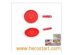 The silicone strainer 1) 100% (FDA, SGS) silicone 2) Endure -40C to 260C 3) Suitable for oven, microwave &deep-freeze Features: Made of 100% silicone material which approved by SGS, PP handle Eash to cleanup and dishwasher and freezer safe Won't absorb flavors and melted butter Various of color, size and shape are available.
