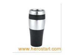 450ML stainless steel travel mug 1. Material: Stainless steel 2. Logo: Customized loge 3. Capacity: 450ml 4. Color: Any color and design is available 5. Packag: PP bags and white box Model No.: YH-117AP Quantity: 48 pieces/carton Carton size: 56x 38 x39cm N. W/G. W: 13/15kg