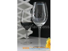 Red wine glass * Perfect for premium sales, promotion, gift, retail, used in restaurants, wineries, household, hotels and banquets, etc. * Product Features: - Mouth blown wine glass - Made of non-lead glass - Brilliant Clarity * One-stop shop service: Custom logo printing, gift box designing and supplying.