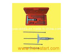 Product Description Depth Micrometers A. Depth Micrometer is with ratchet stop (both Friction and Ratchet thimble are available) B. High accuracy interchangeable robs-Depth Micrometers C. Two Types Depth Micrometer for your choice A Type: Interchangeable robs put from the measuring face B Type: Run through interchangeable robs D. Metric and Inch Sizes supplied