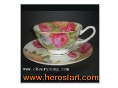 Coffee Cup and Saucer. Material: Fine bone china Top dia: 10.6cm saucer: 15.0cm Bottom dia.: 5.2cm 8.3cm Height: 6.0cm 2.0cm Packing: 24set/ctns Mini order: 3000pcs