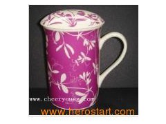 Ceramic cup with lid Material: Porcelain Top dia: 7.3cm Bottom dia.: 6.4cm Height: 10.3cm Packing: 36PCS/ctns Mini order: 3000PCS