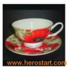 Material: Fine bone China Top dia: 10.6cm saucer: 15.0cm Bottom dia.: 5.2cm 8.3cm Height: 6.0cm 2.0cm Packing: 24set/ctns Mini order: 3000PCS