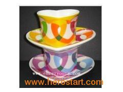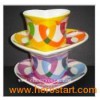 Porcelain Cup and Saucer Material: Porcelain Cup capacity: 120ml Packing: 2PCS cup & saucer make a set, 1 set /gift box; 24 boxes/carton Mini quantity: 2000set Heart shape cup & saucer, heart shape gift box looks more romantic and fashion.