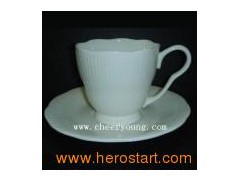 Item: Coffee cup&saucer. Material: Fine bone China Top dia: 8.1cm saucer: 14.9cm Bottom dia.: 4.9cm 8.2cm Height: 7.6cm 2.1cm Packing: 24set/ctns Mini order: 3000PCS