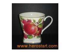 Material: Fine bone China Top size: 9.5cm Bottom: 7.2cm Height: 9.8cm Packing: 6PCS/white inner box, 36PCS per carton Mini order: 3000PCS We can print all kinds of decal as you request.