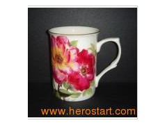 Bone China Mug Material: Fine bone China Top size: 7.7cm Bottom: 7.0cm Height: 10.2cm Packing: 6PCS/white inner box, 36PCS per carton Mini order: 3000PCS We can print all kinds of decal as you request.